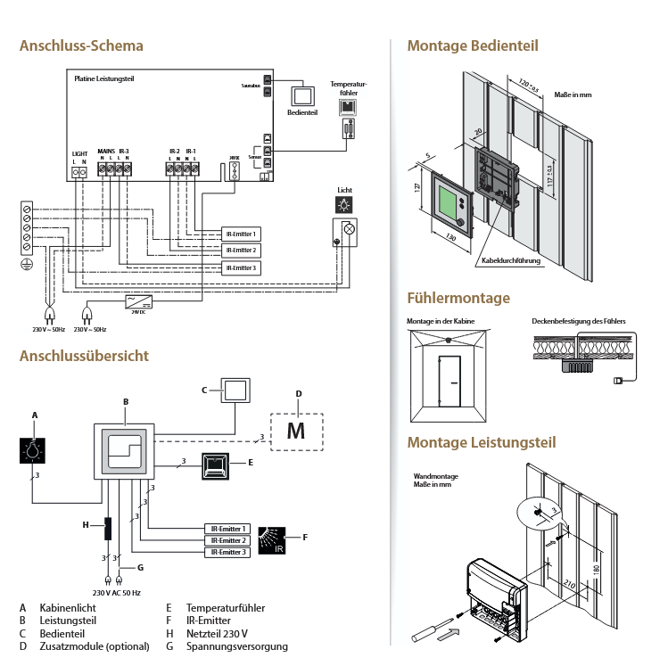 Hochwertiges elektronisches Steuergerät für Infrarot-Wärmekabinen mit drei separaten Regelzonen und Dimmfunktion für private und gewerbliche Anwendungen. Zwei Ausgänge sind dimmbar, ein Ausgang schaltbar – ideal zur individuellen Steuerung verschiedener Wärmezonen.