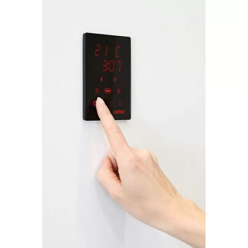 Mit den beleuchteten Xenio-Bedienfelds können Sie die Funktionen Ihrer Sauna auch in dunkler Saunaumgebung steuern. Passen Sie Temperatur, Beleuchtung und Timer-Steuerung direkt über das Bedienfeld an. Mit der Timer-Funktion können Sie Ihre Sauna genau zur gewünschten Zeit aufheizen. Das Bedienfeld kann in der Sauna montiert werden, wo es auch als digitales Thermometer fungieren kann. Das Modell XE unterstützt die Fernstartfunktion und die Schutzvorrichtungen lassen sich leicht direkt an den Saunaofen anschließen.