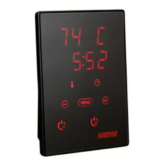 Das vielseitige und intuitive Xenio-Bedienfeld verfügt über beleuchtete Touch-Tasten und Digitalanzeigen. Das Bedienfeld macht es einfach, den Saunaofen einzuschalten, die gewünschte Temperatur einzustellen, die Beleuchtung zu steuern und den Saunaofen zu einer bestimmten Zeit einzuschalten. Das Bedienfeld kann in der Sauna platziert und als genaues digitales Thermometer verwendet werden.