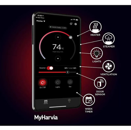 Der Legend XE lässt sich einfach aktualisieren, sodass er mit dem Xenio-WLAN-Zubehörpaket und der mobilen Anwendung MyHarvia fernsteuerbar ist.