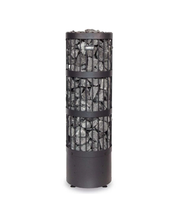 Die Heizung ist kompakt und fasst eine große Menge Steine - bis zu 100 kg. Die kleinen, von der Schmiede gefertigten Details und die schwarze Farbe sind ein Blickfang, und die Form des Ofens ermöglicht es, den Ofen in die Saunabänke zu integrieren.