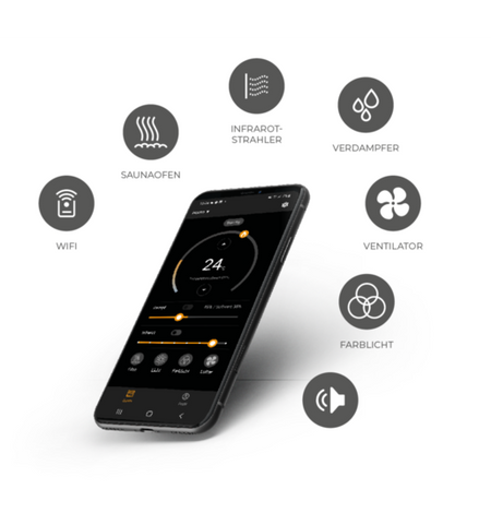 Die innovative Technik des Pro-D WiFi zeichnet sich durch eine einfache Plug & Play-Installation und die Verbindung über einen WiFi Dongle aus. Die App bietet eine benutzerfreundliche Oberfläche, über die sich verschiedene Funktionen der Sauna steuern lassen. Dazu gehören die Regulierung der Temperatur und Luftfeuchtigkeit, die Steuerung von Infrarotstrahlern, die Einstellung des LED-Farblichts sowie die Kontrolle über eine zusätzliche Lichtquelle und einen Ventilator.