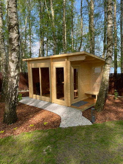 wellmia Halden | Gartensauna mit Vorraum aus Fichtenholz | versch. Maße