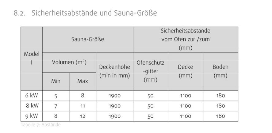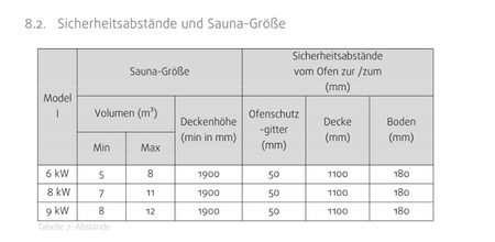 Volumen der Saunakabine 5 - 8 m³ 8 - 12 m³