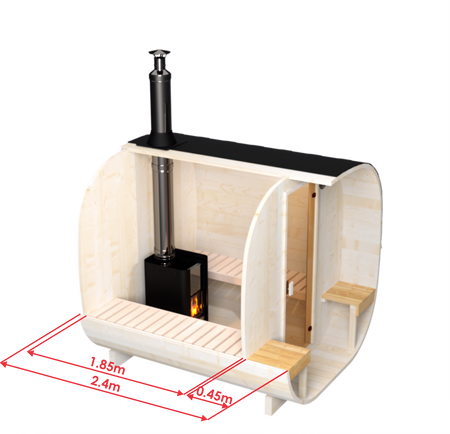 Die kleine wellmia® Quadro Fasssauna Small Veranda mit einer Gesamtlänge von 2,40 Meter ist ideal für 4 Personen geeignet. Es ist die perfekte Lösung für kleinere Grundstücke. Sie können sich nach dem Saunagang bequem vor die Sauna setzen und sind zum Teil auch vor Regen geschützt. Die Sauna wird als Bausatz geliefert und lässt sich sehr schnell & leicht mit einer ausführlichen Aufbauanleitung zusammenbauen. Bei uns können Sie die Holzart, Fenster und Türen auswählen.