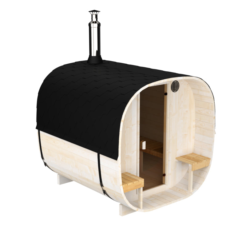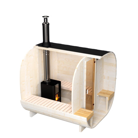 wellmia® Quadro Fasssauna Small Veranda 240 cm | konfigurierbar | kleines Saunafass mit Veranda für 4 Personen