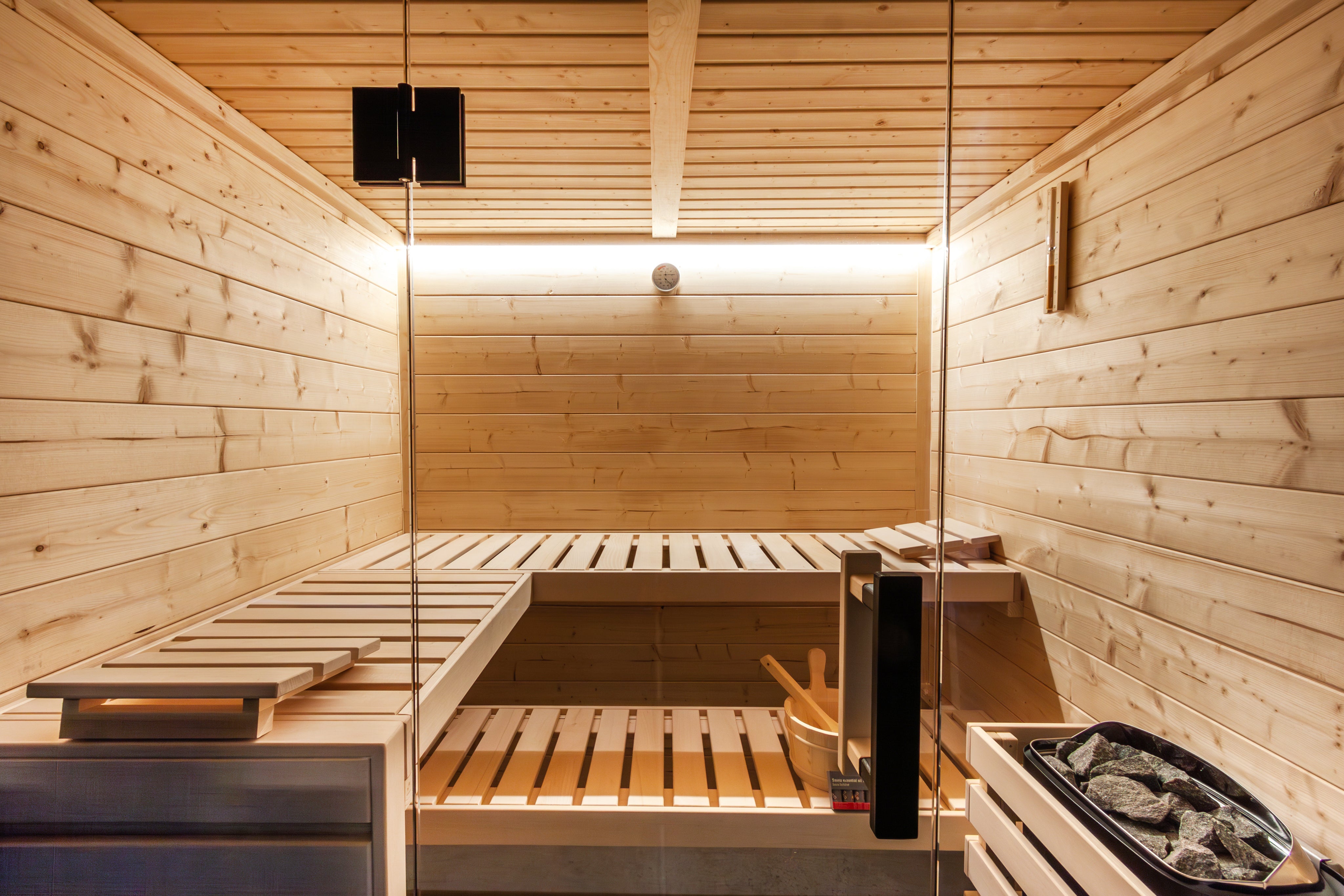 Die Markensauna Harvia (ehemalig sentiotec) Family ist eine moderne Innensauna mit hervorragender Optik als Blickfang für Ihr Zuhause . Die geräumige Family Sauna bietet Platz für 5 Personen. Zudem kompensiert die Wandstärke der Sauna die Nachteile der Glasfront die Wärme nach Außen abgibt perfekt. Die Innensauna Kabine von Harvia kommt mit zahlreichen Zubehör und ist ein echter Hingucker für Ihr Zuhause. Sprechen Sie uns gerne bei Fragen an.