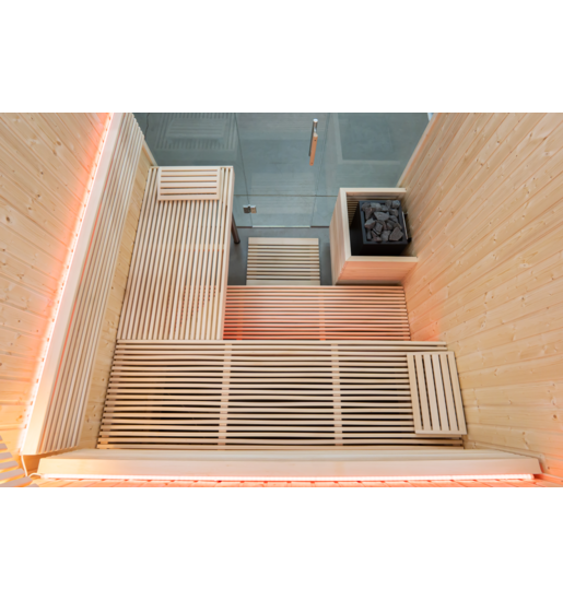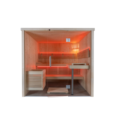 Die Markensauna Harvia (ehemals Sentiotec) Panorama Large ist eine moderne Innensauna mit hervorragender Optik als Blickfang für Ihr Zuhause mit Platz für 5 Personen. 65mm Wandstärke dämmen speichern die Wärme besonders lange. Die Wandstärke der Sauna kompensiert die Nachteile der Glasfront die Wärme nach Außen abgibt perfekt. Die Innensauna Kabine von Sentiotec kommt mit zahlreichen Zubehör und ist ein echter Hingucker für Ihr Zuhause. Sprechen Sie uns gerne bei Fragen an.