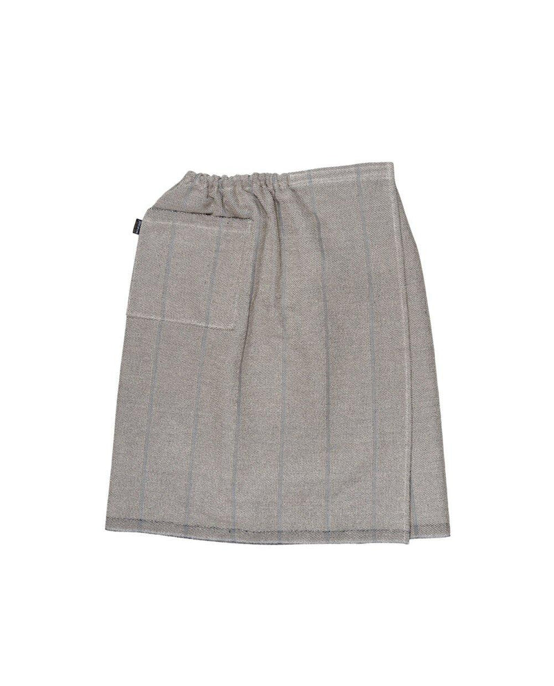 Das Saunatuch mit Klettverschluss lässt sich einfach anpassen und sitzt sicher am Körper – ideal für Damen und Herren. Eine großzügige Fronttasche bietet praktischen Stauraum für kleine Utensilien. Der stilvolle Look der Laituri Kollektion passt perfekt zu jedem Wellness-Moment.