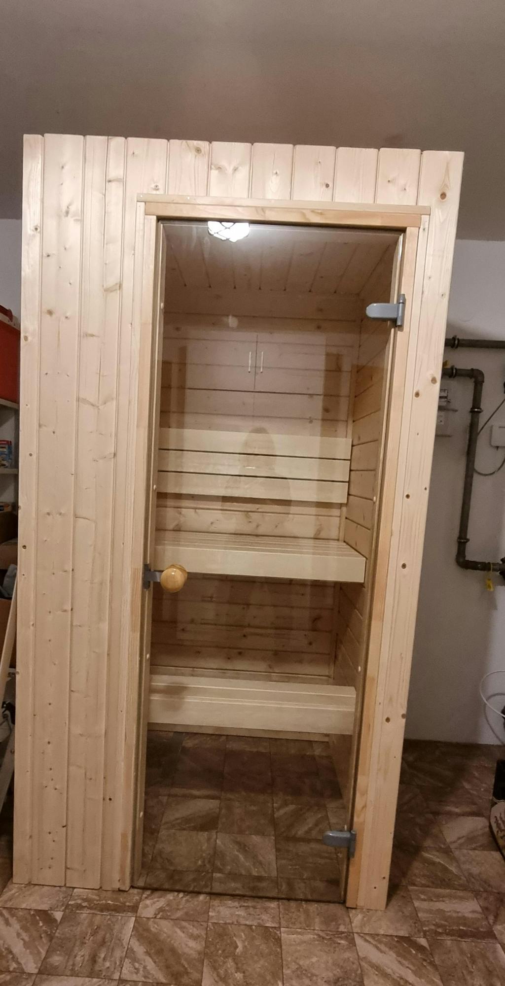 wellmia® Spirit Mini | Sauna für kleine Wohnungen | mit Steckdosenofen |109 x 109 x 200 cm